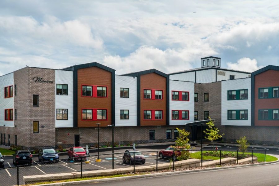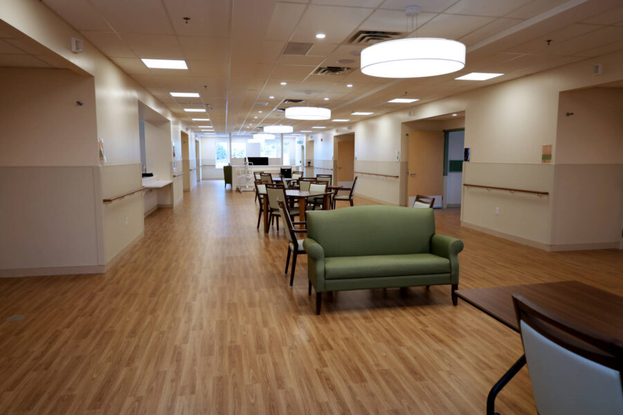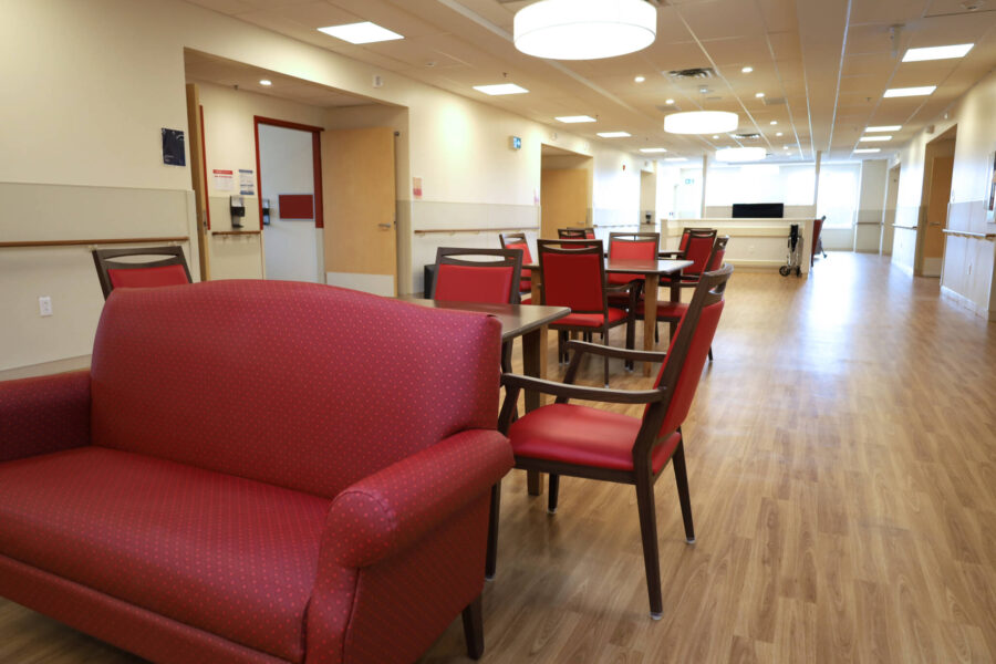 Set in a tree-lined, park-like area in the heart of Mahone Bay, Nova Scotia, this state-of-the-art 96-bed facility was unveiled in July 2024. Each of the three storeys includes six wings, each with 16 single rooms. Residents in each wing share a common space that has a kitchen, dining area and comfortable living area to enjoy social activities. The facility also has an occupational therapy and physiotherapy treatment room, a hair salon for residents, outdoor spaces and the Irene MacLeod Community Room – a large space for the use of residents, families, staff and community members.