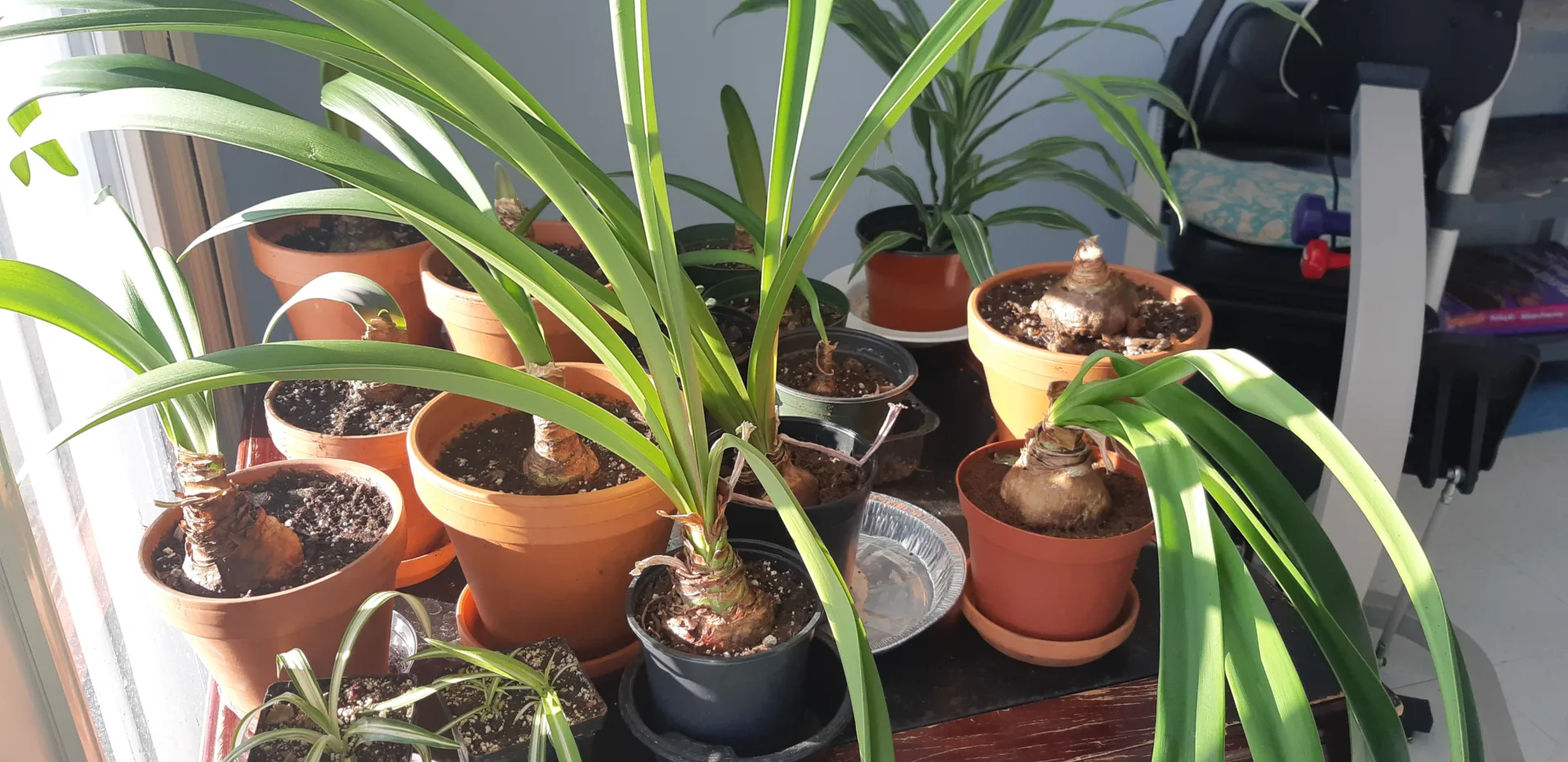 I ventured down to the first floor room next to the Activity space on Wednesday for a few minutes just to, yes, I will admit it, escape for a few minutes to settle myself, look out at the river and breath in the quiet of the moment. Well, what do you think I discovered there? The table next to the window was covered with amaryllis bulbs planted and growing, clear evidence that our Gardening Club never quits. I saw a few small spider plants mixed in there too making me smile and calmly take comfort in new growth, the struggles involved but also the knowledge that struggles are what lead us to progress and growth in the first place. The amaryllis bulbs are all different sizes, different stages of growth, and yet, each will have a beauty all its own. Like us, they will grow and change and, if lucky enough, have a chance to start all over again. If we too keep our face toward the sun, the shadows will fall behind us. Happy Spring everyone!!